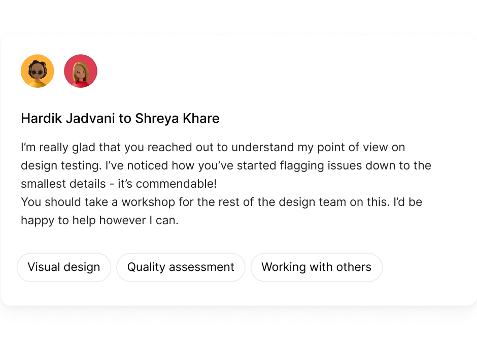 Make it easy for everyone to give and receive actionable feedback that drives improvement, using templates or writing freely to support growth.