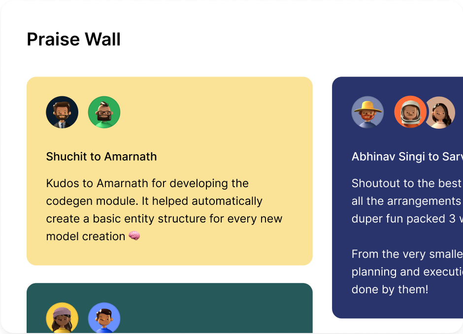 Recognize great work, small wins, and meaningful contributions, bringing people into the spotlight and celebrating impact across teams.