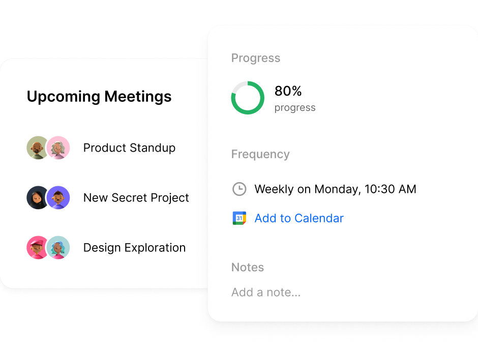 Run structured meetings that align teams, surface updates, and keep work moving forward.