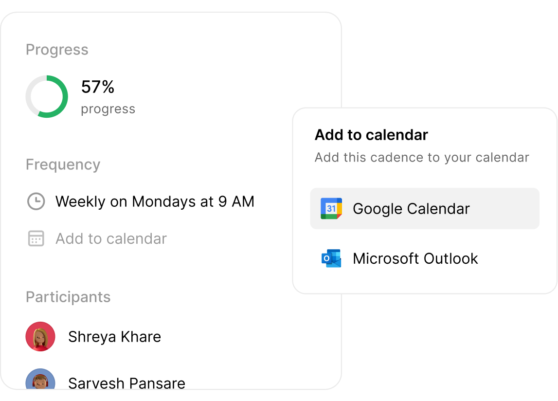 Stay on track by syncing meetings with Google Calendar and Outlook, so you never miss important discussions.