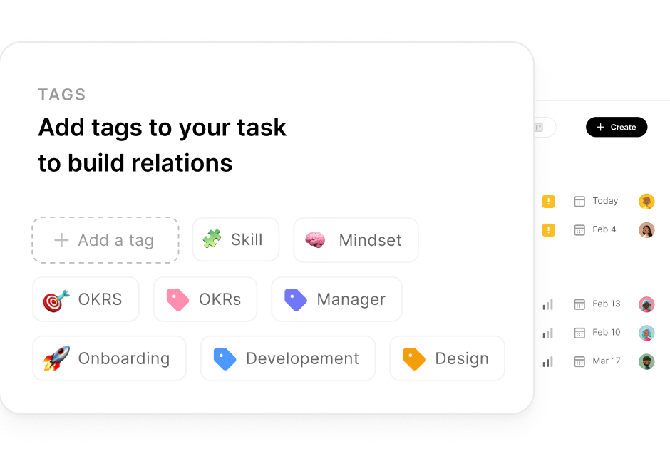 Connect tasks to projects, goals, mindset, skills, and activities to align daily work with strategic outcomes.
