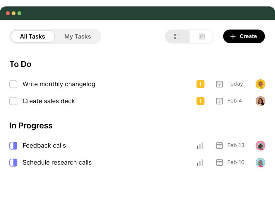 Organize related tasks into grouped lists to create clarity, focus, and structured execution flows.